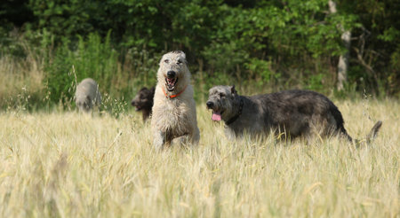 Amazing irish wolfhounds running together in nature