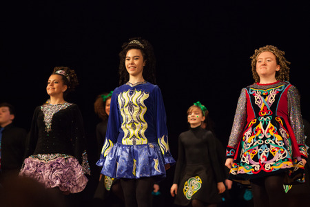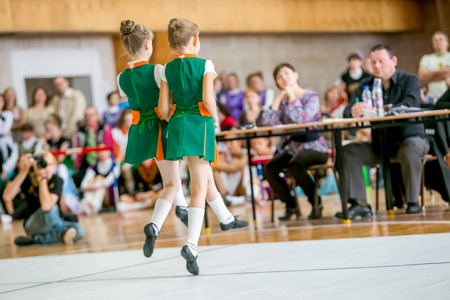 Omsk, Russia - August 22, 2015: International competition of irish dance, girls dancing