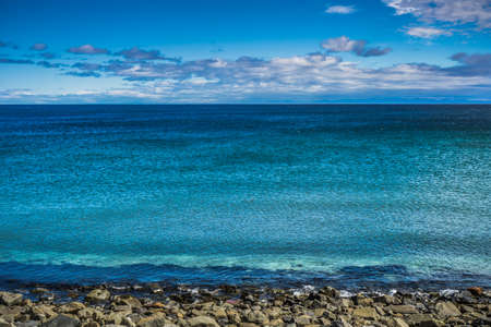 View on the turquoise waters of St Lawrence river in Godbout, a small village of Cote Nord, in Quebec (Canada)