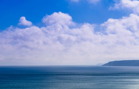 Beautiful seascape with blue sky and clouds. Panoramic view.