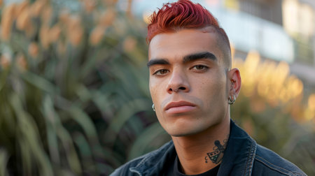 young punk man. Portrait of bold male with bright image, daring style. Generative AI.
