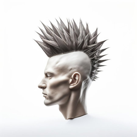 the 3d male model showcases a stylish faux hawk hairstyle, perfectly groomed and textured, set against a clean white isolated background, ideal for e-commerce, advertising, and graphic design projects requiring a modern, trendy, and attention-grabbing visual element. ai generated