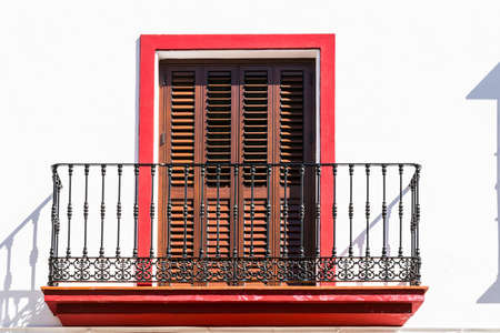 Carmona Spain July 31, 2021 Closeup of window of a old house in the narrow streets in town of Carmona, the town shows a typical narrow and meandering Arabic layout