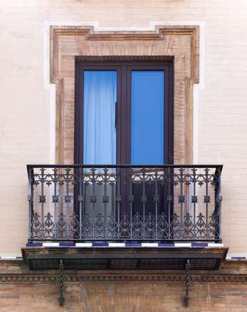 Seville Spain July 21, 2021 Facade of a building in the streets of Seville, an emblematic city and the capital of the region of Andalusia, in the south of Spain