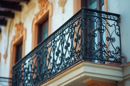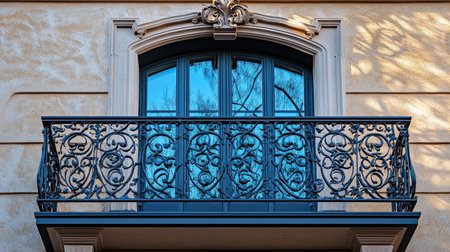 Discover a charming balcony featuring ornate ironwork and elegant windows, showcasing beautiful architectural details and refined craftsmanship in a historic setting.