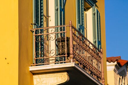 Nafplio, Greece 28 December 2015. Beautiful colorful balcony at Nafplio in Greece.
