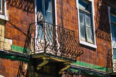 Lisbon Portugal july 30, 2020 View of window on the facade of ancient historical buildings in the downtown area of Lisbon, the coastal capital city of Portugal and one of the oldest cities in Europe