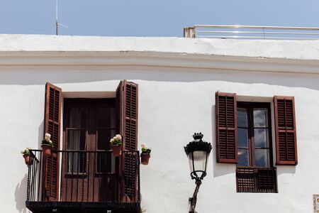 Carmona Spain July 14, 2021 Closeup of a window of a old house in the narrow streets in town of Carmona called The Bright Star of Europe, the town shows a typical narrow and meandering Arabic layout