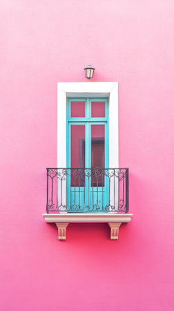 Minimalist balcony on pink wall with closed windows, background, AI Generated