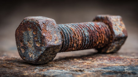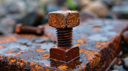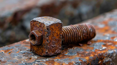 Artistic picture with rusty iron old bolt on rusty iron surface close-up macro photography