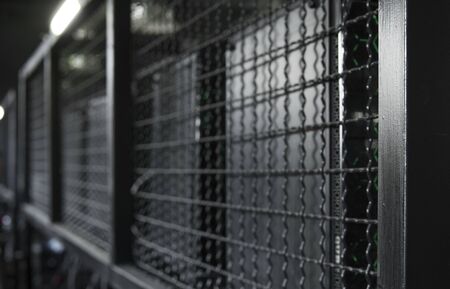 corner of cage metal wire at tennis court