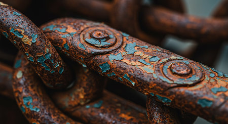 Rusty Metallic Chain Representing Strength and Security, Linking Generations Through Time