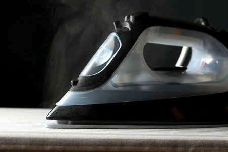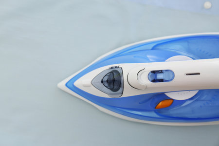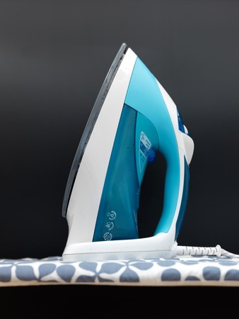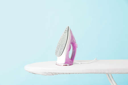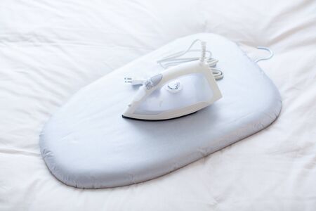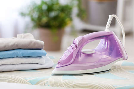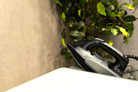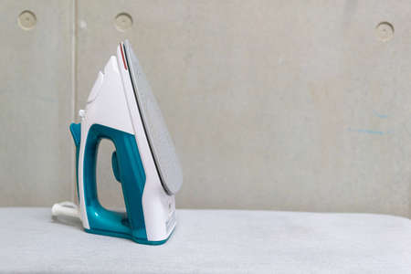 Gray electric iron on ironing board.ironing things on an ironing board in a modern home