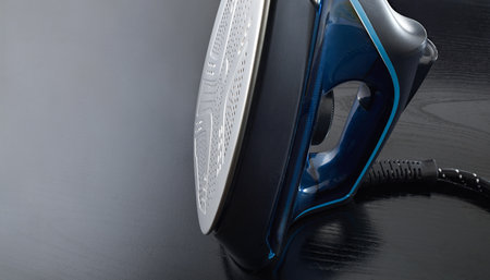 A sleek blue steam iron designed for modern homes, perfect for removing wrinkles from fabrics. This appliance combines style and functionality for efficient garment care.