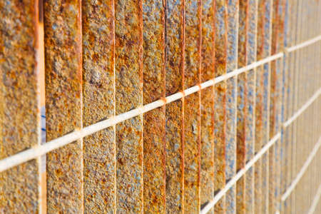 Rusty iron net for ferro-concrete. Selective focus