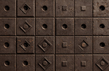 horizontal texture of rusty metal surface with square shapes