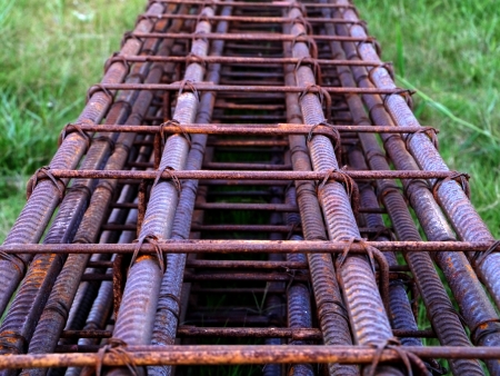 The rebar is bonded with steel wire for use as a construction infrastructure. Which part of the rebar has rusted due to chemical reactions.