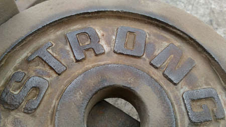 The Sheet metal with letters STRONG that are polisheding rust off.polisheding Rust hen some.