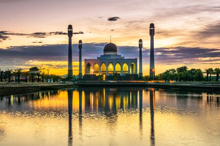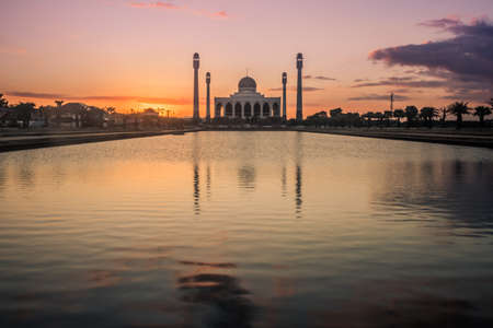 Landscape of beautiful sunset sky at Central Mosque in Songkhla province, Southern of Thailand.