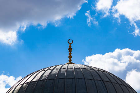 Dome of the mosque at sunset. Ramadan Kareem background.