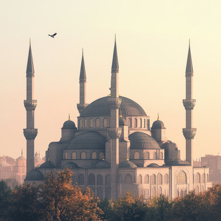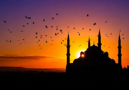 beautiful mosque against a pure serene and divine atmosphere professional photography