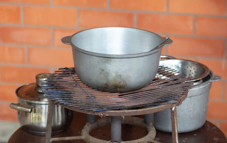 close up of Aluminum kettle is outdoor