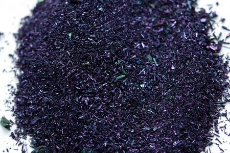 copper ammonium carbonate. blue crystals on a black background. macro.