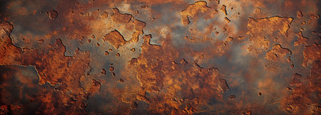 Detailed view of a weathered metal surface covered in rust and corrosion showing vibrant textures.
