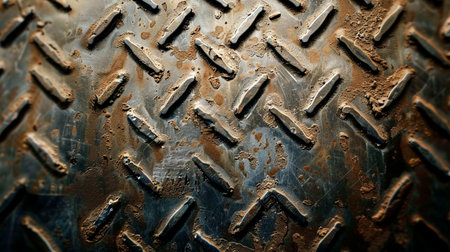 Professional digital texture capturing industrial grit through rugged metallic styling, intense harsh directional lighting, and subtle weathered patina for a tough, dramatic mood. Ideal for commercial applications in manufacturing branding, engineering visuals, automotive graphics, and urban design projects emphasizing strength and durability. High-contrast s... AI-generated digital illustration. AI-generated illustration.