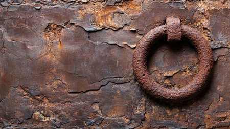 Captivating image of a weathered iron ring on an aged textured surface, showcasing rich patina and rustic appeal, perfect for various art and design projects.