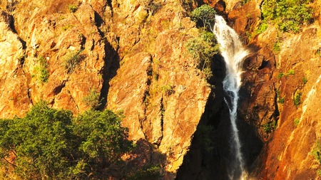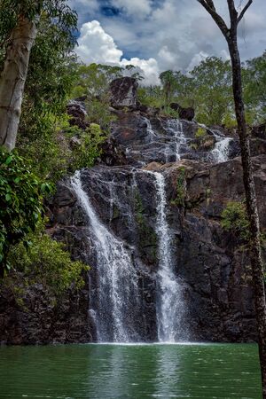 Lush nature: waterfall cascading through rocky terrain at Australia's Florence Falls. Litchfield NP
