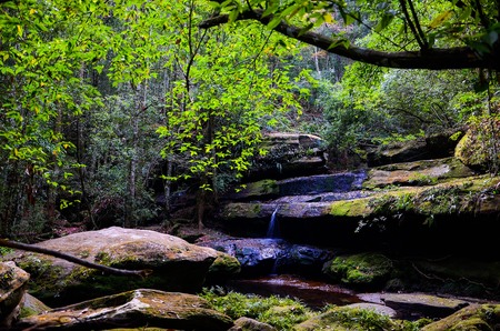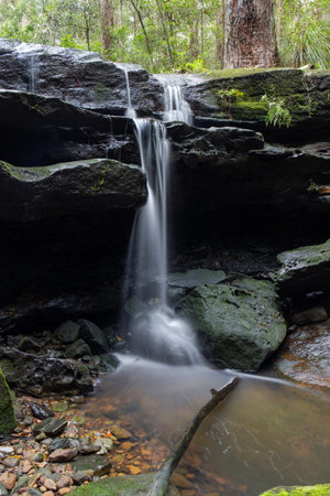 A fast running stream with small waterfalls in a woodland soth of Sydney, Australia.