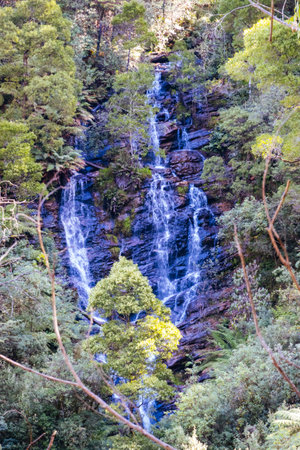 Multiple cascades of upper section of Katoomba Falls in the Blue Mountains of New South Wales near Sydney Australia
