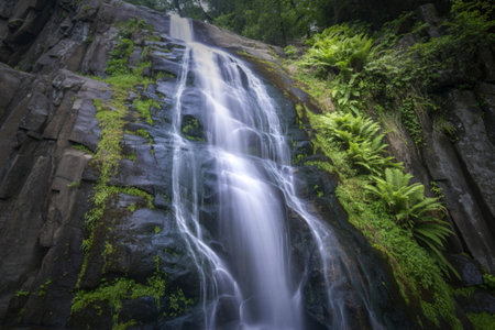 Beautiful waterfall in the green forest, long exposure shot, long exposure