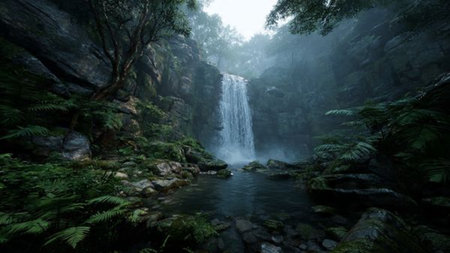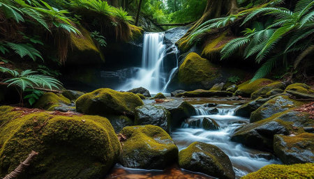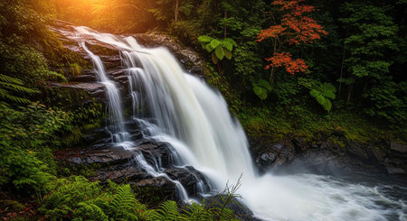 Scenic waterfall in a beautiful rainforest
