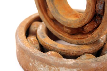 Old and rusty ball bearing, isolated on white background