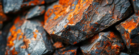 Rocky terrain showcases close up view of rugged stones, highlighting their textures and colors under natural light. scene evokes sense of nature raw beauty and geological diversity