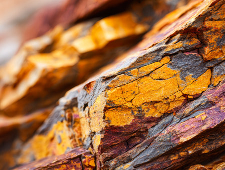 This captivating close-up image features a textured rock formation, highlighting its warm tones and shimmering surfaces, showcasing the natural beauty of geology.