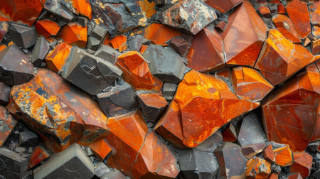Vivid Orange and Gray Rocks Showcase Natural Mineral Formations in a Geological Exhibit During Afternoon Sunlight. Generative AI