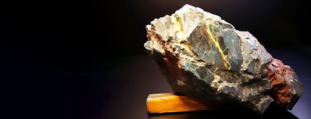 Nacrite is a rare precious natural geological stone eremite on a black background in low key. Fashionable jewelry elegant decoration. AI generated. Header banner mockup with space.
