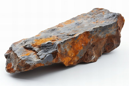 A single rock with rugged texture, isolated on a white background, perfect for nature or minimalist designs