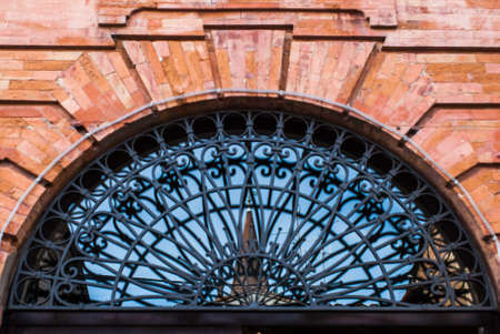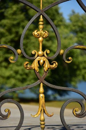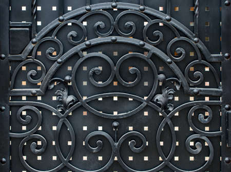 Decorative metal gate ornament. Antique iron door with classic ornaments.