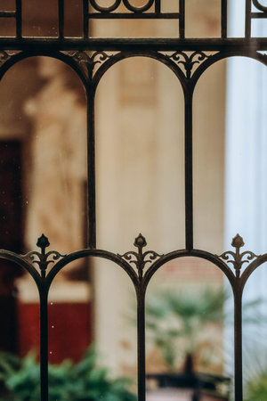 Vintage wrought iron pattern. ancient architecture. Blurred background. close up