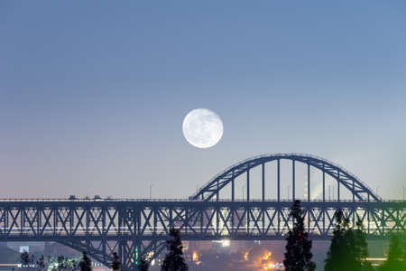 jiujiang yangtze river bridge closeup at night, China