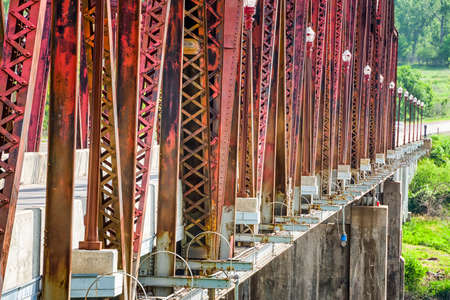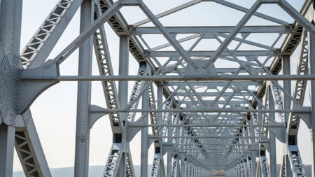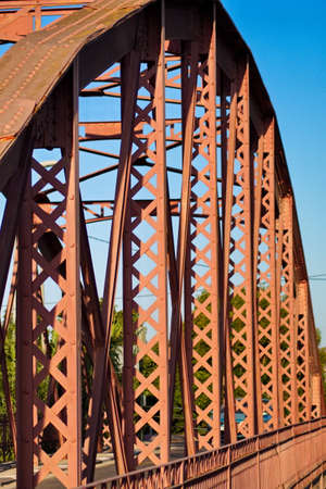 Metal structure of an old bridge with a useful design to support the weight of cars and trucks that cross the river