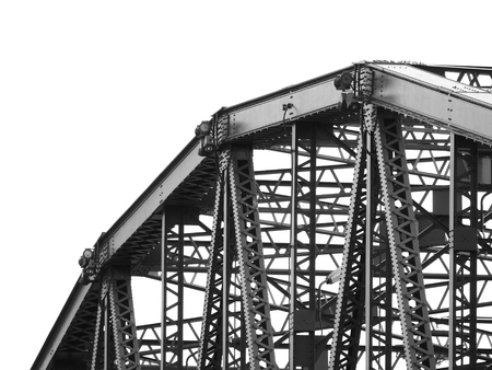 Detail of the steel structure of a bridge. Black and white