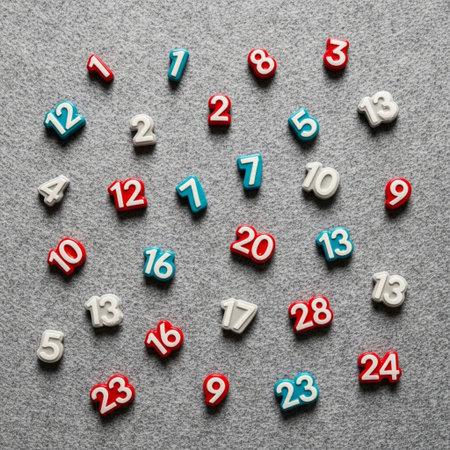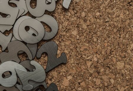 wooden numbers are randomly arranged on pink suede. High quality photo