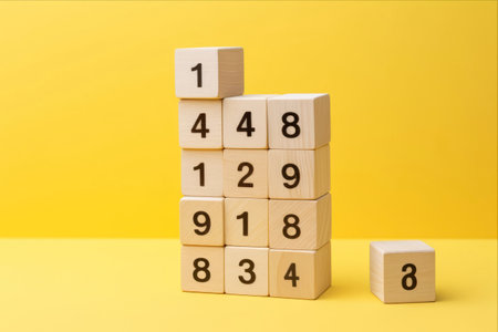Mathematics background made with solid numbers on a board. Isolated on yellow