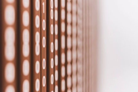 Abstract close up of rows of numbered brown panels creating a striking visual effect, perfect for finance, data visualization, and background uses