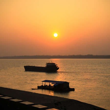 a sunset at the mekong river in the town of Chiang Saen in the north of the city Chiang Rai in North Thailand. Thailand, Chiang Sean, November, 2019